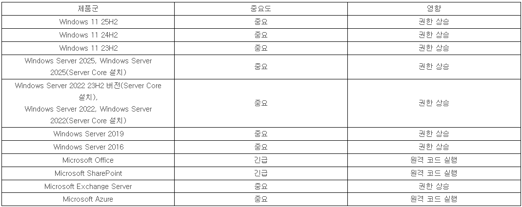 https://msrc.microsoft.com/update-guide/ko-kr/releaseNote/2025-Dec