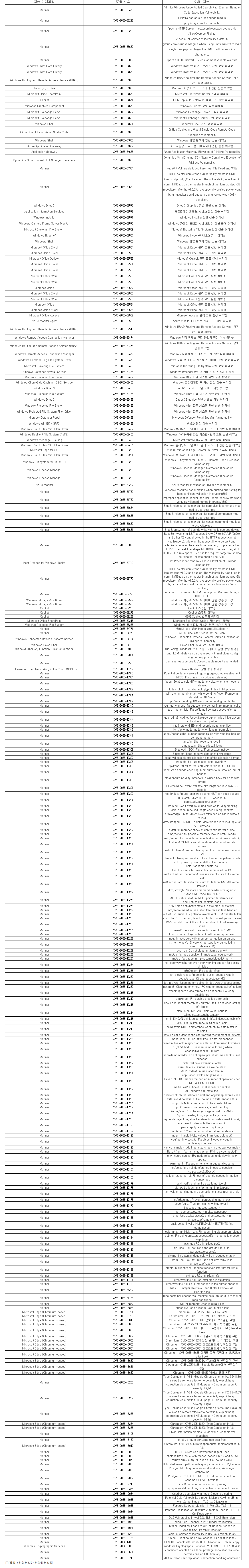o 등급 : 긴급 (Critical) 2 종 , 중요 (Important) 9 종